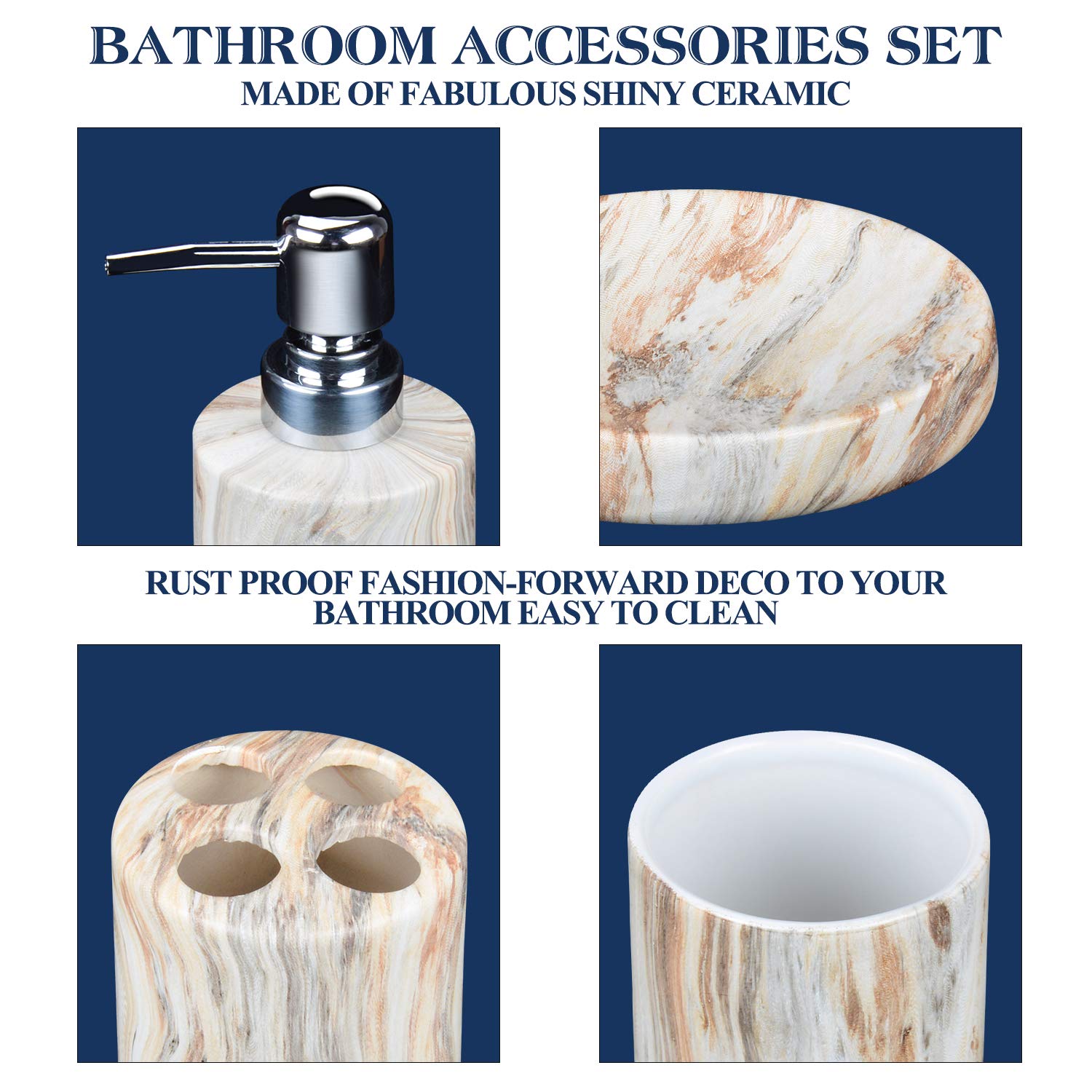 - NO MORE RUST: The Bathroom Decorative Accessories Are Made good quality porcelain. That Never Corrodes.