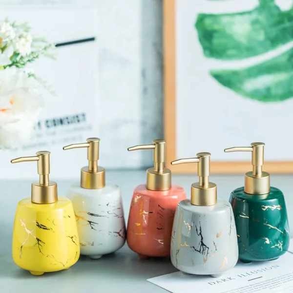• Avoid wastage of liquid soap by appropriate dispensing. Ceramic hand sanitiser bottle / Dispenser for bathroom Basin. Add beauty to home. Bottle Liquid Soap Dispensers. Elegant and Beautiful Refillable Liquid Soap Dispenser
