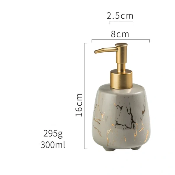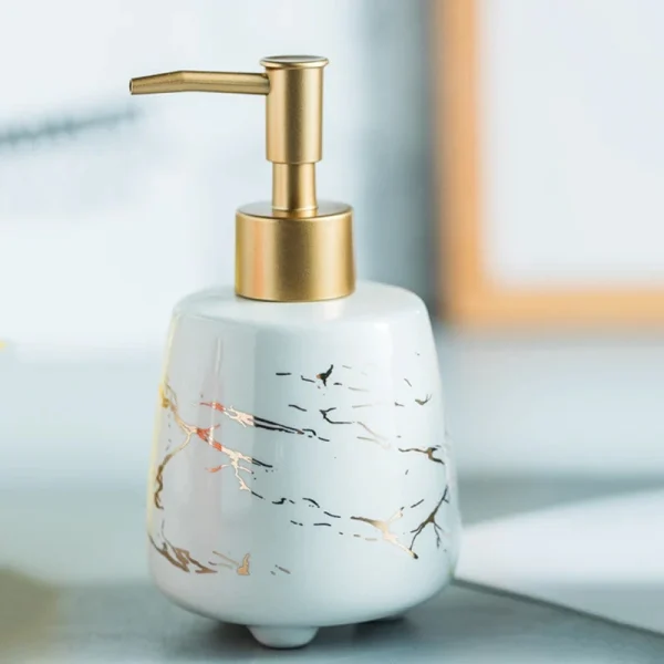 • The modern ceramic soap dispenser has a smooth marble finish. Its vibrant and fashionable look will add a touch of luxury to enhance any decor style.