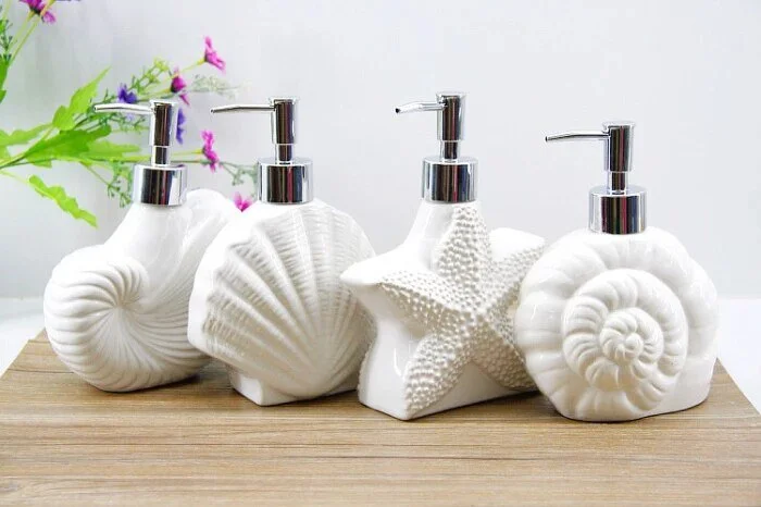 - Premium Material: Our seashell soap dispenser bottle is made of high-quality porcelain, durable, easy to wipe clean. The removable plastic pump head is rust-free, smooth operating, and leak-proof. Suitable for use in the moisture-rich bathroom environment.